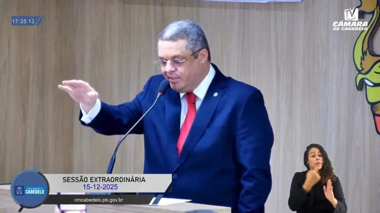 Prefeito interino Edvaldo Neto toma posse na Câmara Municipal de Cabedelo – Foto: Reprodução/TV Câmara Cabedelo