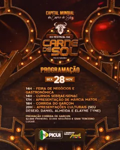 O festival, promovido pela Prefeitura de Picuí, celebra a força econômica e cultural do município, reconhecido nacionalmente por sua produção de carne de sol. A edição deste ano promete ser uma das maiores já realizadas.