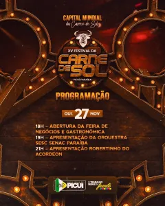O festival, promovido pela Prefeitura de Picuí, celebra a força econômica e cultural do município, reconhecido nacionalmente por sua produção de carne de sol. A edição deste ano promete ser uma das maiores já realizadas.