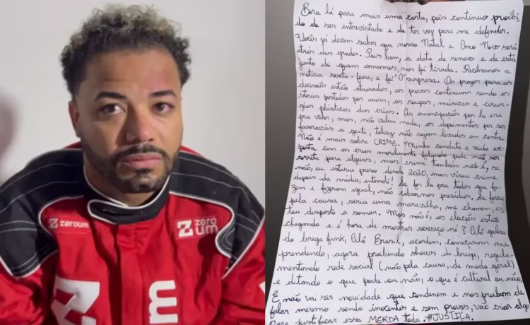 Ele encerrou a carta com mais um ataque direto ao sistema judicial. “E não vai ser novidade que condenem e nos proíbam de falar, mesmo sendo inocentes e sem provas, vão criar algo para justificar essa m***a toda”, disse.