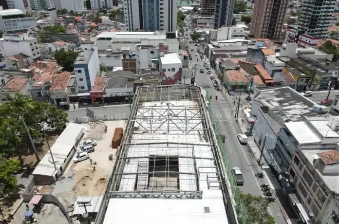 “A etapa de fundação foi a mais complexa, porque se tratava de uma estrutura antiga, sendo realizada por partes para não comprometer a estrutura. Com a finalização da estrutura metálica, ela já tomou formato de cinema e teatro e, a cada dia, vem avançando mais. A parte hidráulica da obra também já está sendo executada. Depois de concluída a concretagem do pavimento superior, o próximo grande passo será a etapa do telhado termoacústico”, destacou Anselmo Rodrigues, gerente de engenharia da Seduc.